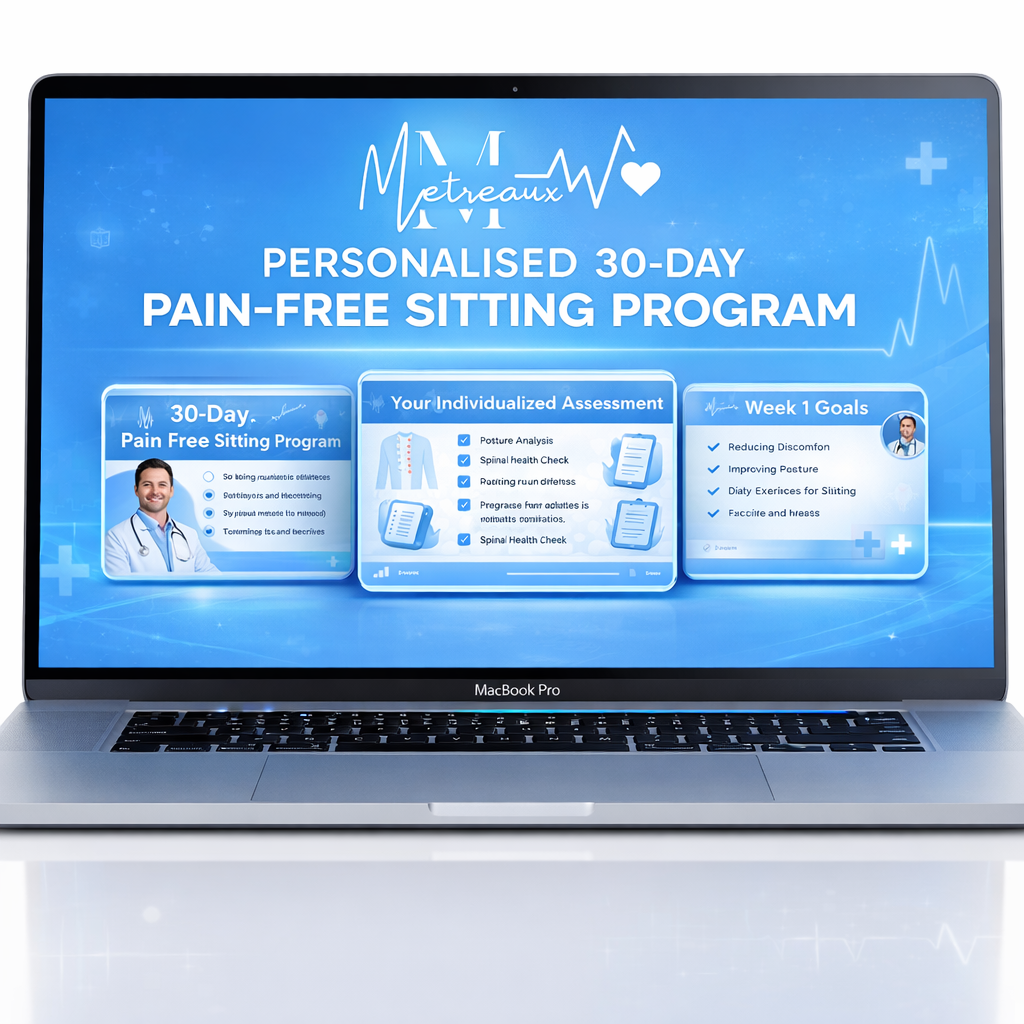 After you order, you’ll email us details about your sciatica — how long you can sit, what makes it worse, and where you feel pain. Based on this, our team prescribes a clear, step-by-step 30-day plan designed to safely help you sit for longer with less discomfort.